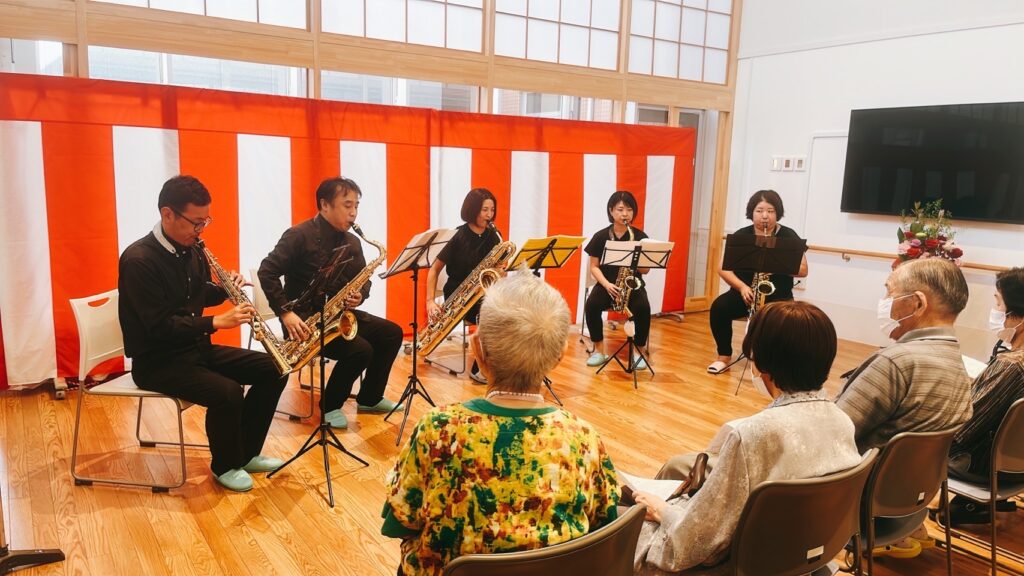 本当に久しぶりの生演奏で、お互いにお顔が良く見えるところで、気持ちが通じ合い感極まったり、笑顔が響きあうひと時となりました。「こんなに良い日になるとは・・・」との声も聞かれました。