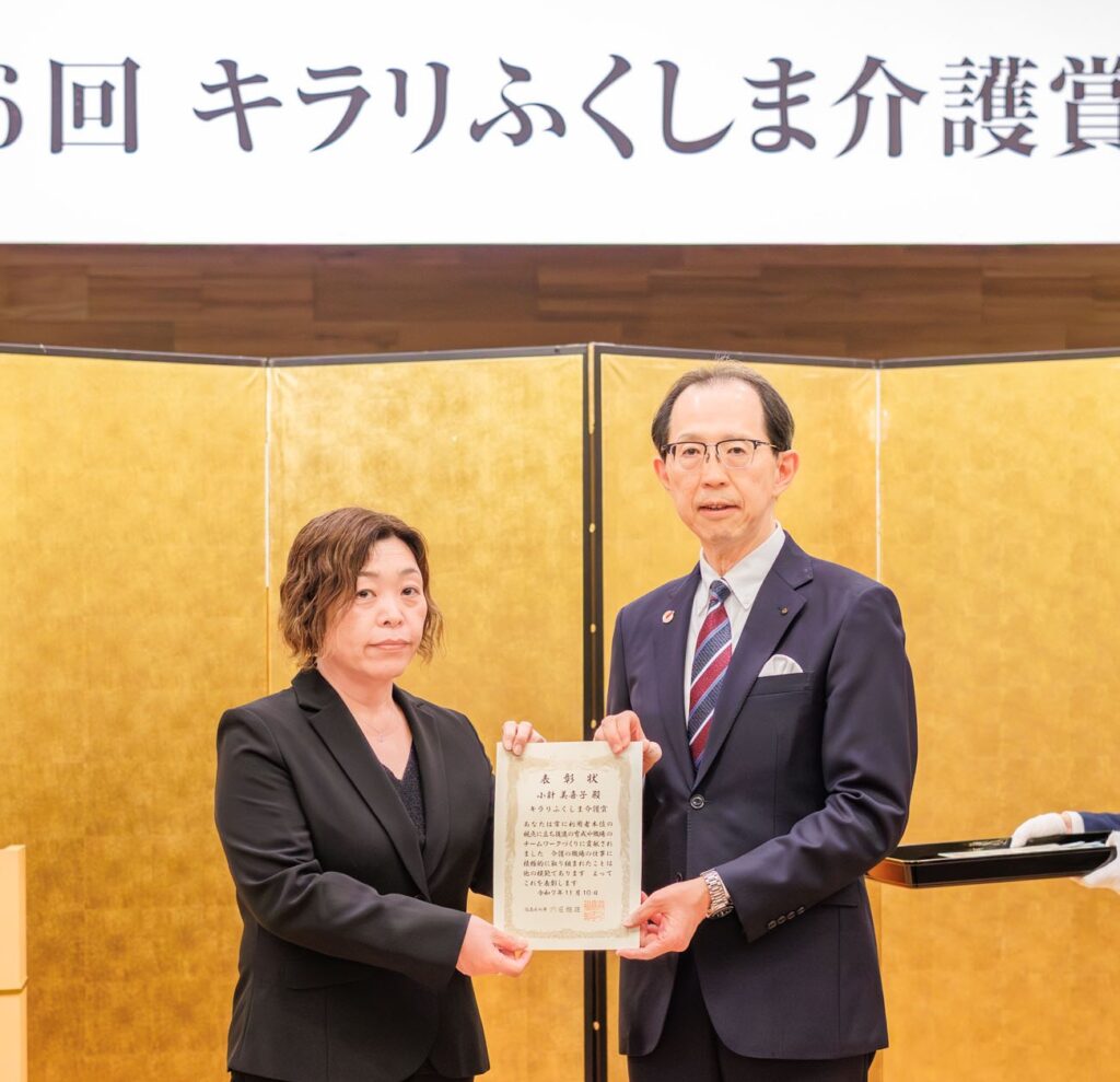 令和7年度<キラリふくしま介護賞>に小針美喜子(うねめの里介護課サブリーダー)が授賞いたしました。 キラリふくしま介護賞は「入居者様に対する思いや対応が優れている」、「新人職員、後輩職員への指導・助言の要であり、チームワ・・・
