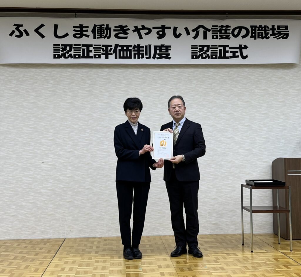 令和8年2月13日 郡山福祉会は「ふくしま介護の職場認証評価制度 ハイレベル認証」を拝受しました。 ふくしま介護の職場認証評価制度は令和7年度に創設され、就労環境等の改善や人材育成につながる介護事業者の取組について、福島・・・