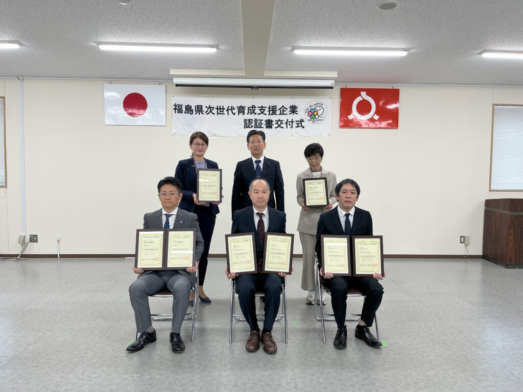郡山福祉会は福島県次世代育成支援企業「働く女性応援」認証を受け、9月25日に認証状交付式に出席しました。 本認証は、仕事と育児が両立できる職場環境づくりに取り組み、加えて介護との両立や男女が共に働きやすい環境など仕事と生・・・