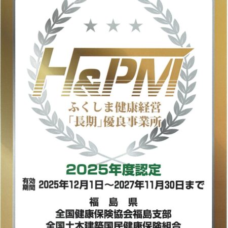 【ご報告】2025年12月1日 郡山福祉会は≪ふくしま健康経営「長期」優良事業所2025≫認証を拝受いたしました。 郡山福祉会では、入居者様・利用者様の人生・暮らしに寄り添った心の通うケアを行うには、職員が心も身体も健康・・・