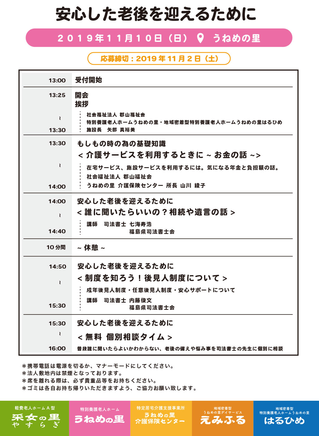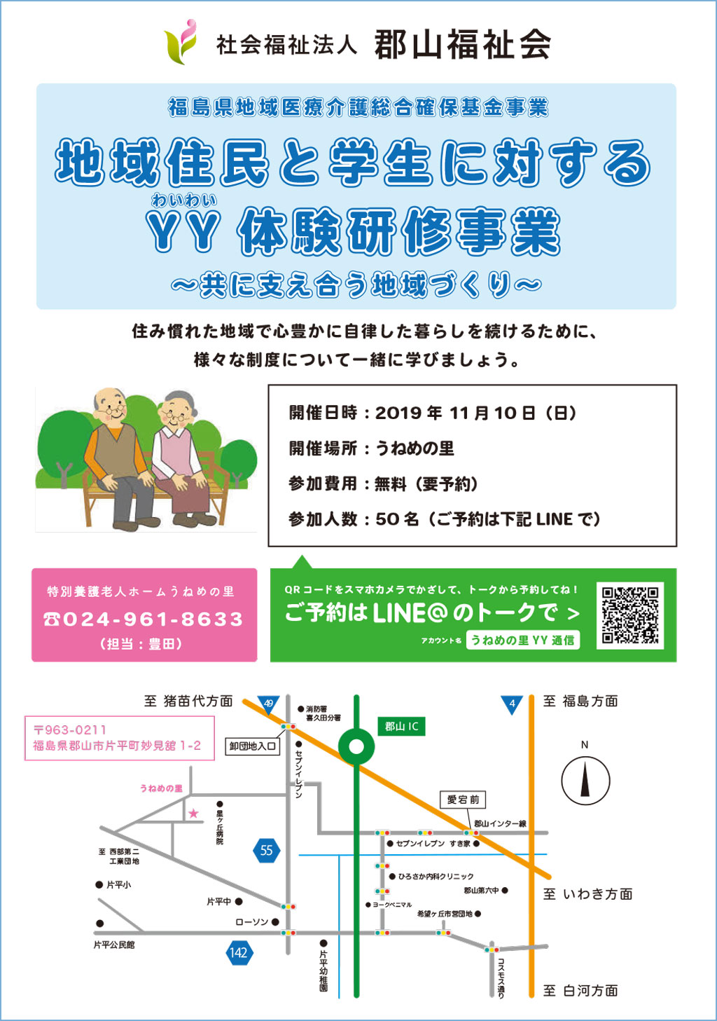 > 11月10日(日)『安心した老後を迎えるために』地域住民と学生に対するYY体験研修事業