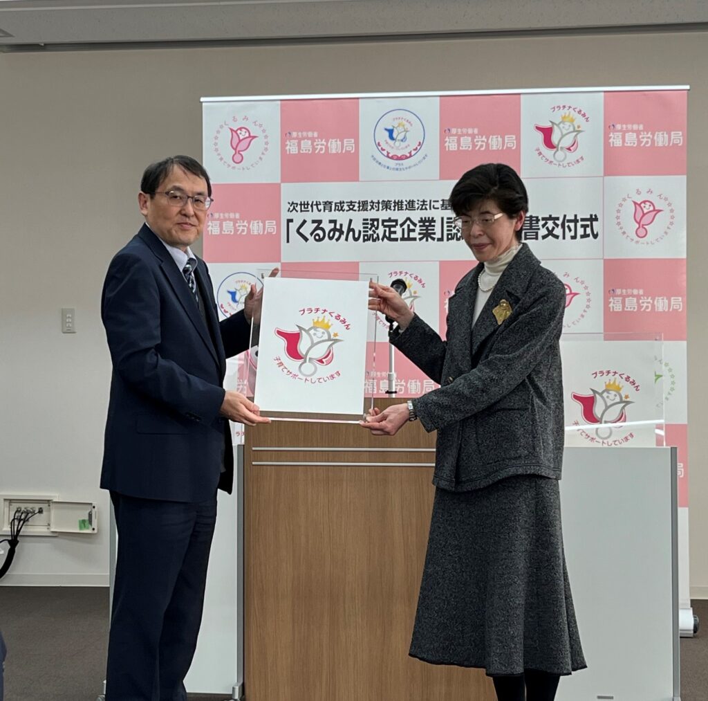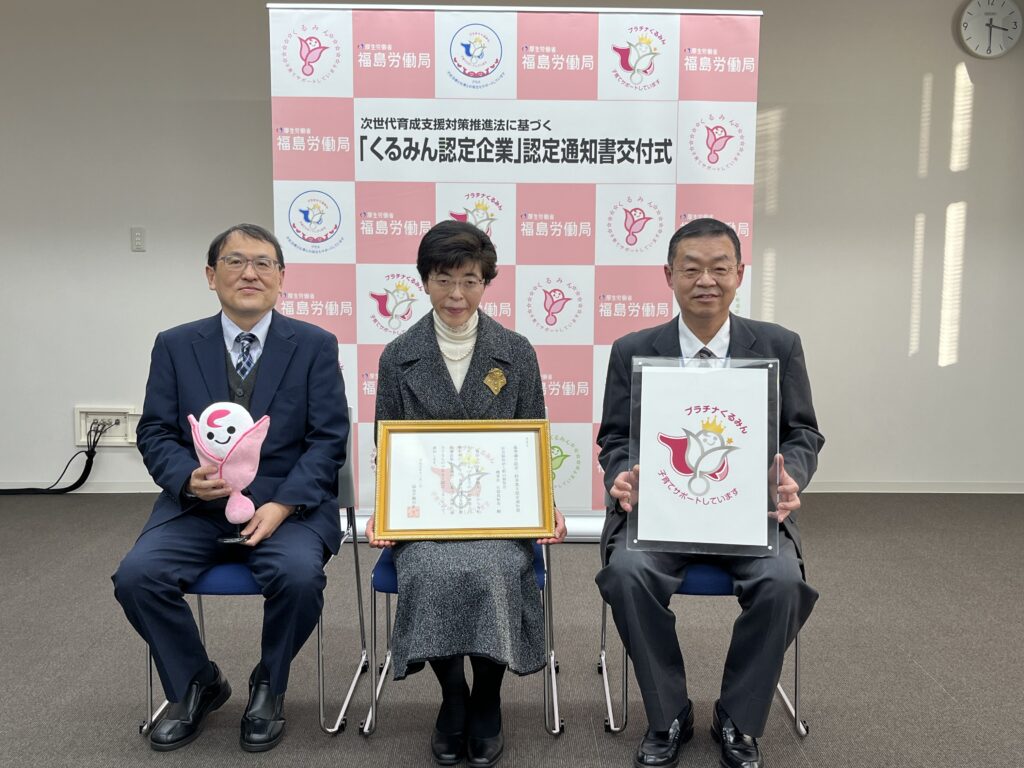 子育てサポート企業の証「プラチナくるみん」認定を拝受しました