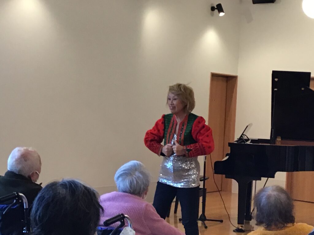 ケイコ様の奥深いピアノの調べと魂の歌声は、入居者様、ショートステイご利用の皆様の身体に染みわたり、心が揺さぶられるような感動のひとときとなりました。ケイコ・ボルジェソン様、素敵な演奏をお届けくださり、誠にありがとうございました。
