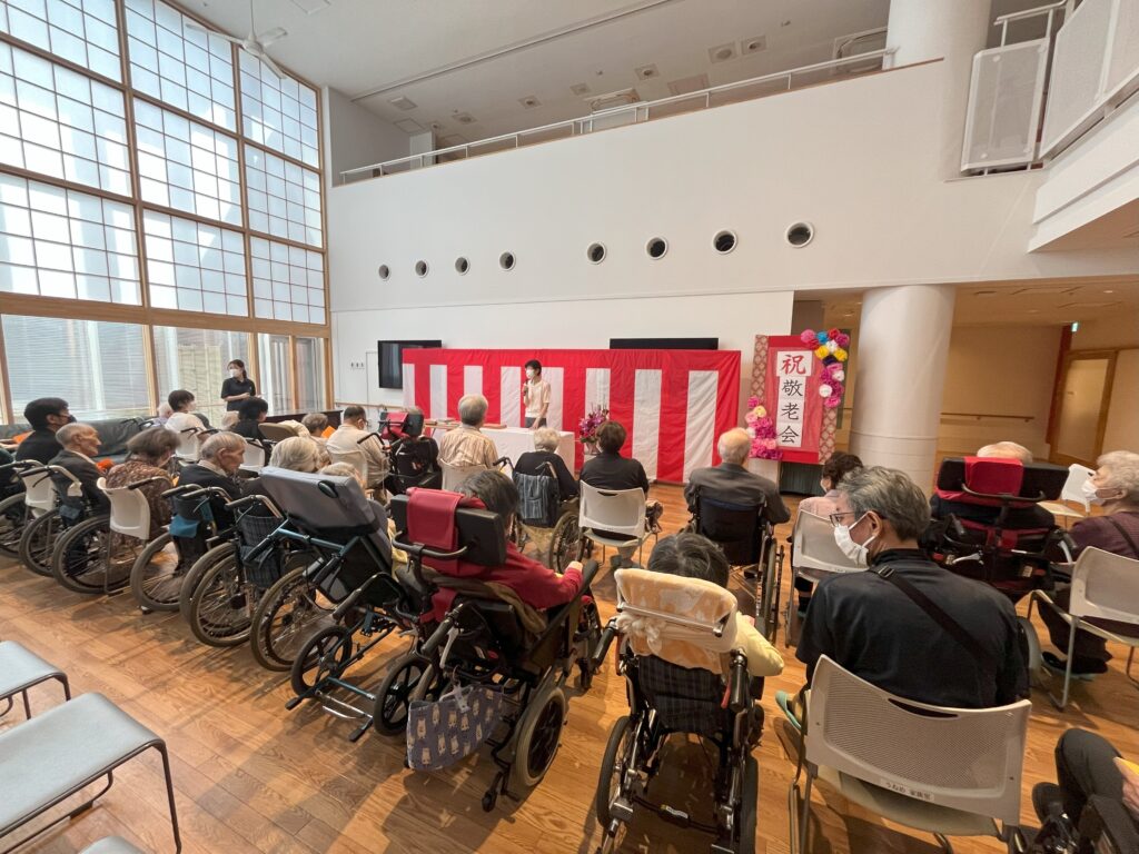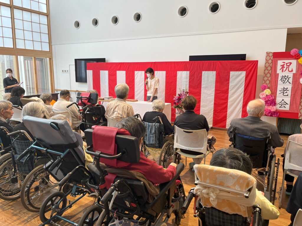9月15日 令和7年度うねめの里敬老会を開催し、数年ぶりに家族様にもご出席を賜り、人生の節目にあたる皆さまへ記念品をお贈りしました。