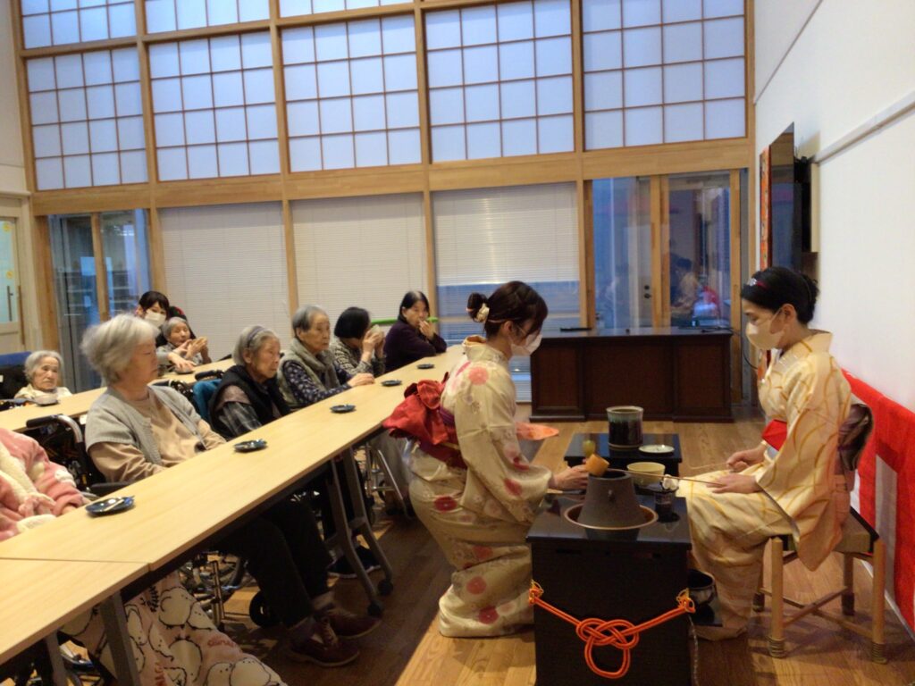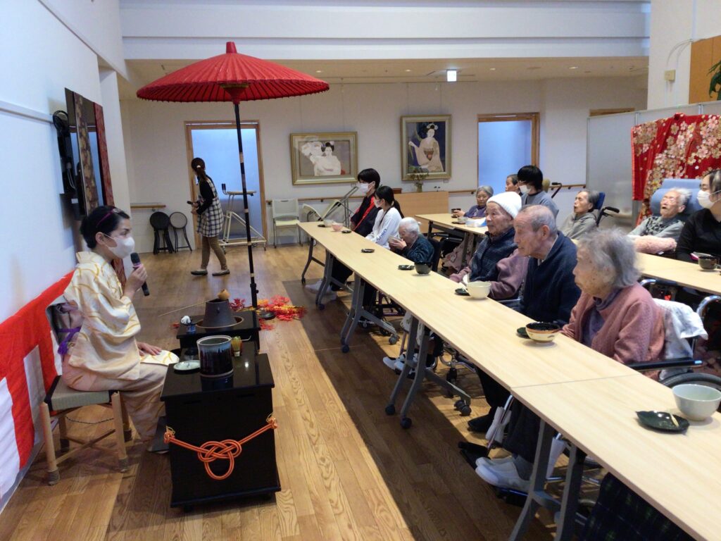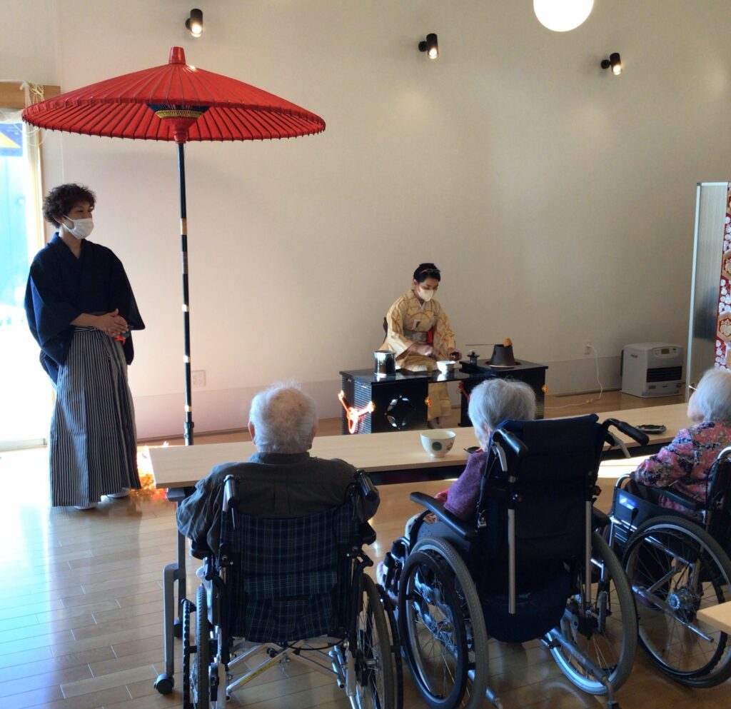 郡山福祉会と大変ご縁のある、裏千家淡交会郡山支部 田中宗久教授にお点前を賜り、移りゆく季節に自然と身を任せ、一期一会のお茶会を入居者様と共に楽しみました。