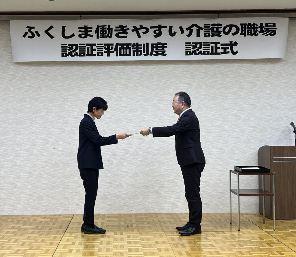 「ふくしま介護の職場認証評価制度 ハイレベル認証」を拝受しました
