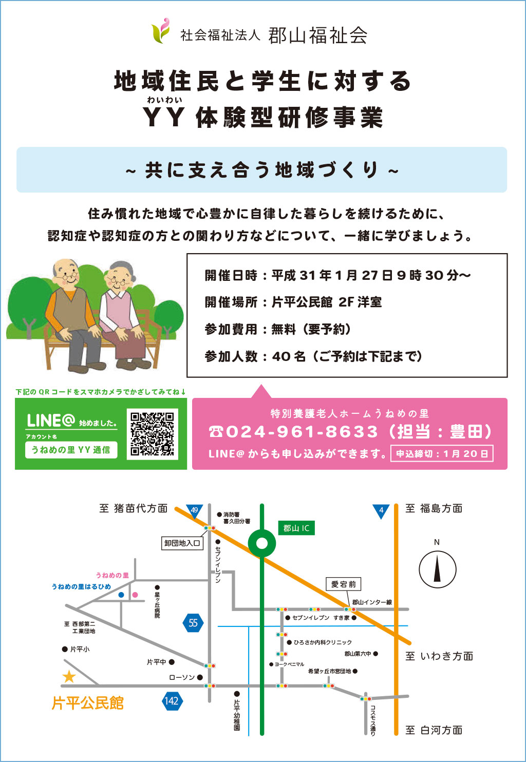 11月8日 うねめの里地域交流室を会場に≪第8回YYカフェ≫を開催いたしました。 岡本宏二先生(作業療法士、ふくしまをリハビリで元気にする会 理事長)を講師にお招きし「元気なこころとからだ、いつまでも」と題・・・