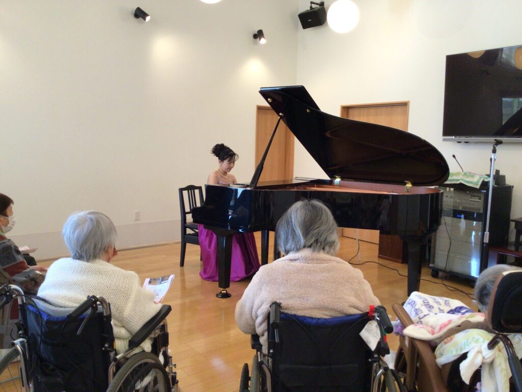 令和7年3月7日 郡山福祉会と大変ご縁があるピアニスト 古河歌織様がピアノコンサートを開催してくださいました。 「うねめの里讃歌」「春よ来い」「花は咲く」などお馴染みの曲を選曲し演奏してくださいました。はるひめの地域交流・・・