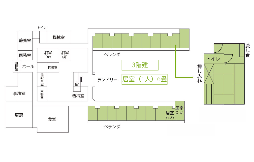 | 共有設備 | 食堂、共同浴場、談話室、クラブ活動室など |